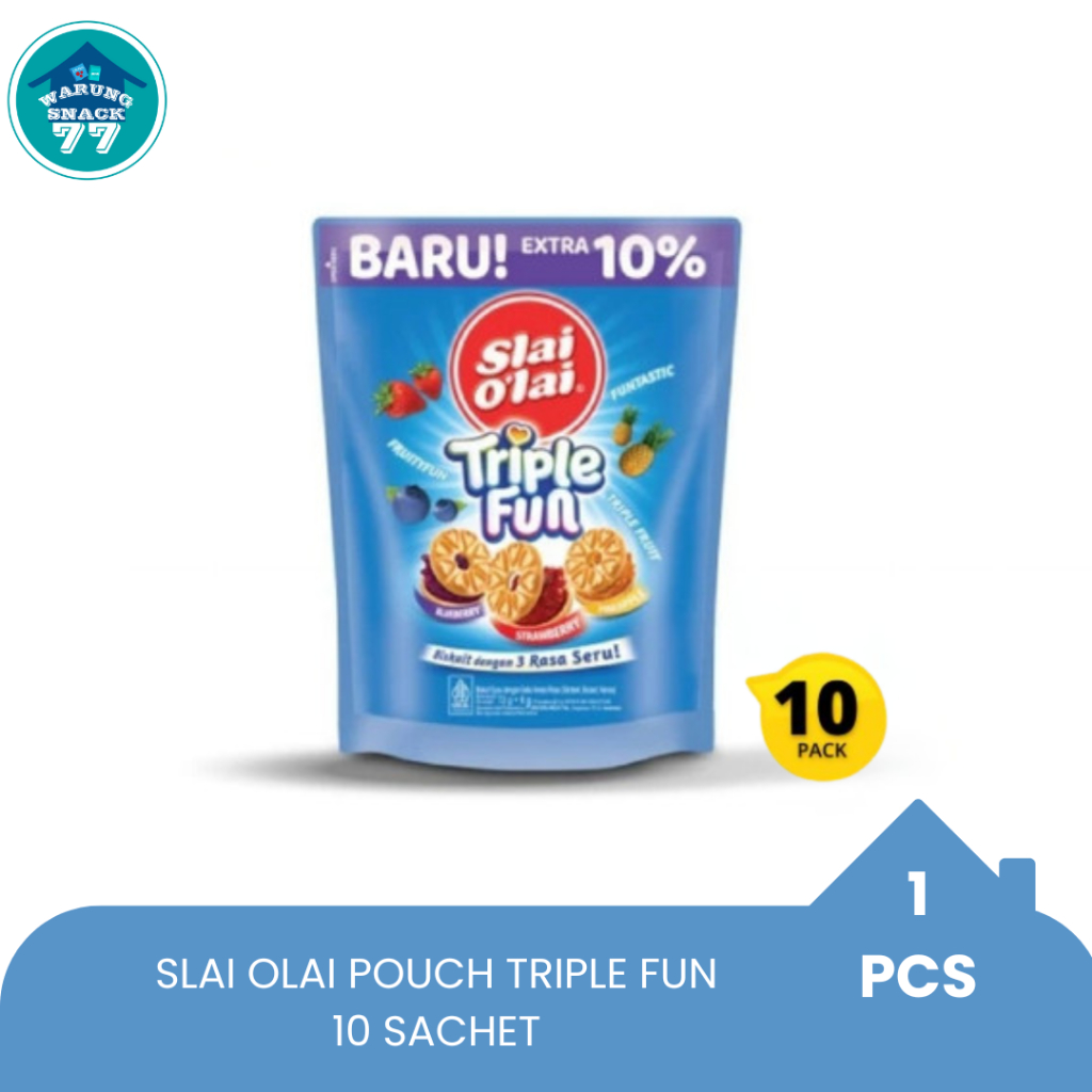 Biskuit persembahan Roma yang memiliki tekstur selai yang lembut dan rasa gurih yang nikmat untuk Anda. Biskuit ini memiliki kandungan susu, vitamin B1, B2, B6, B12, dan E yang sangat penting untuk tubuh Anda. Selain itu, biskuit persembahan Roma cocok dijadikan cemilan sehat saat santai Anda bersama keluarga. yuk cobain slai olai triple fun, biskuit dengan 3 rasa yang seru! dengan rasa strawberry, blueberry, dan pineapple