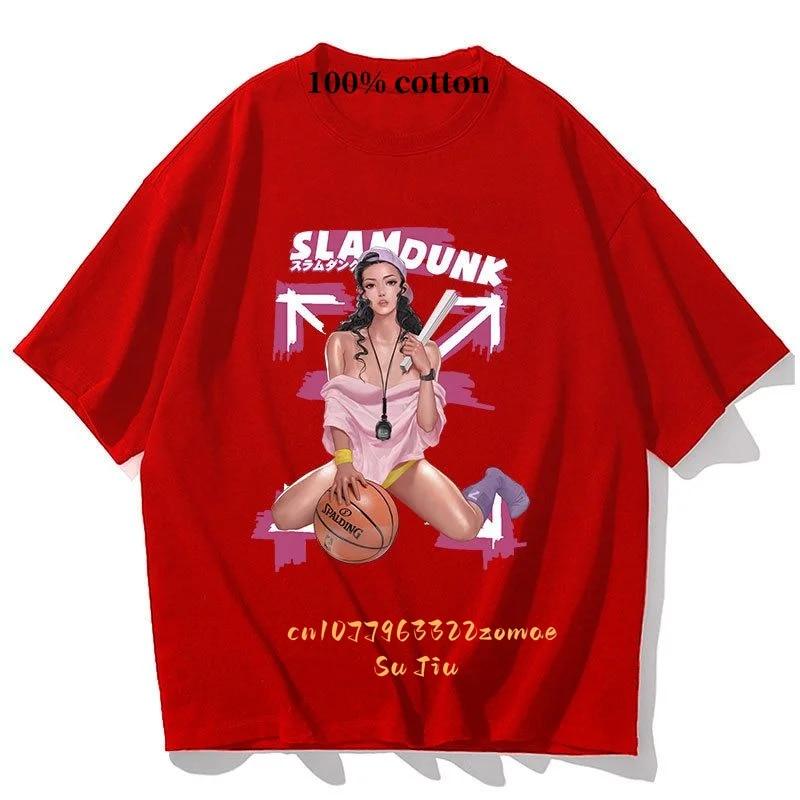 SLAM DUNK красочная футболка с короткими рукавами и принтом унисекс, женские топы из чистого хлопка, повседневные анимационные баскетбольные летние футболки 3XL