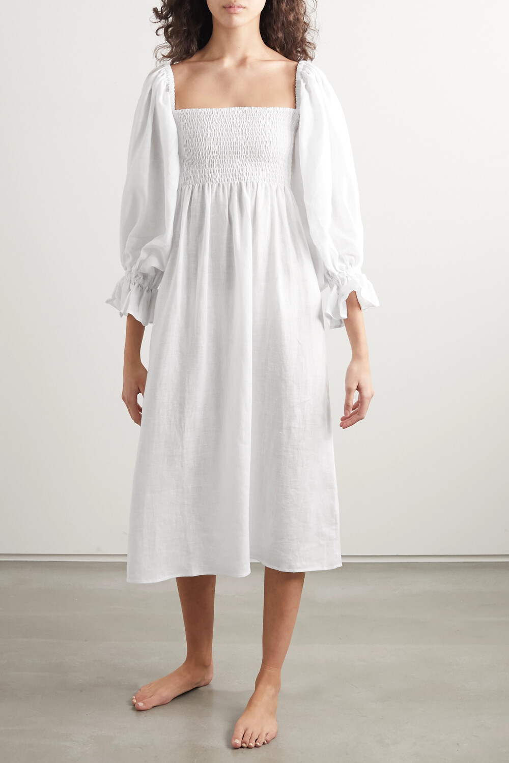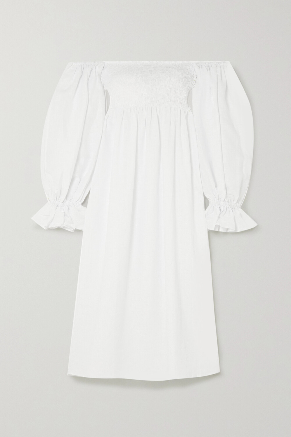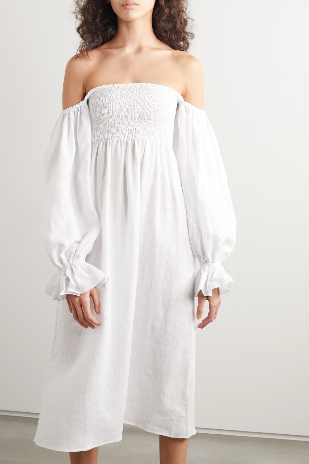 SLEEPER + NET SUSTAIN Atlanta льняное платье миди со сборками и открытыми плечами, белый