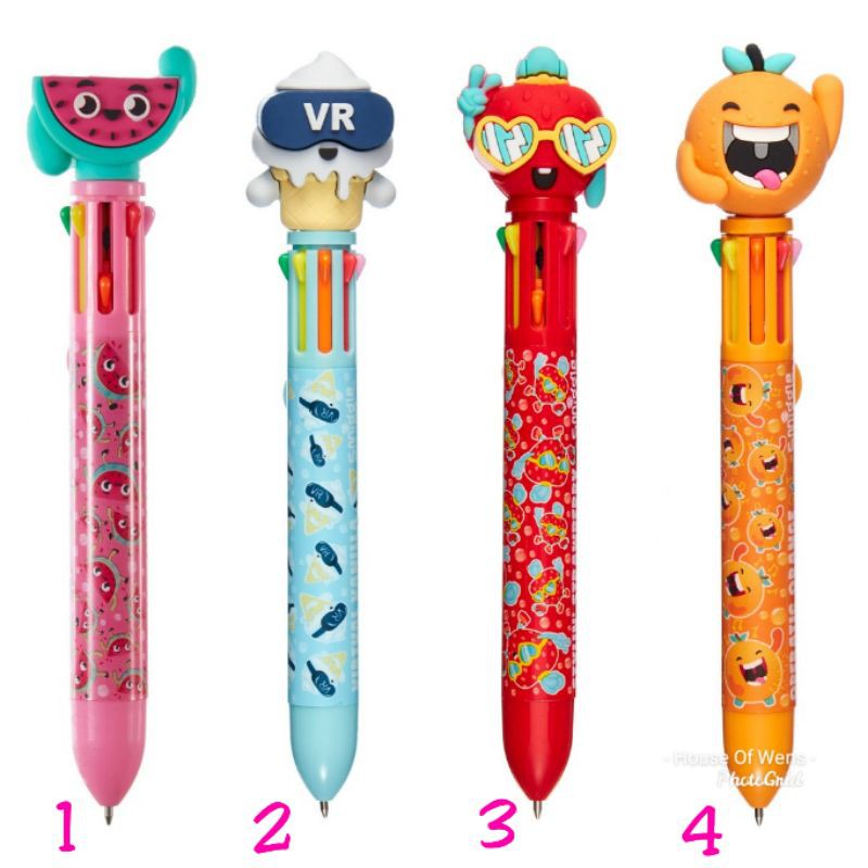 Rainbow pen with fruity novelty character topper