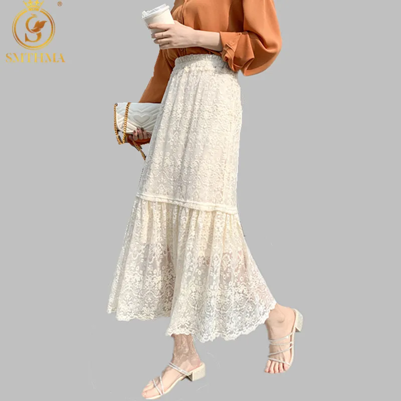 SMTHMA кружевная юбка с вышивкой для женщин, сетчатая эластичная длинная юбка с высокой талией, женская элегантная летняя модная одежда 2021