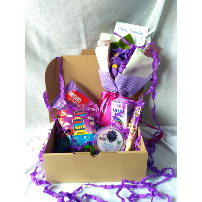 Haii bagi kalian yang suka Warna ungu nih. Kami sediakan PAKET HEMAT UNGU 2. Snack box ini bisa dijadikan sebagai hadiah ulang tahun, graduation atau acara lainnya untuk teman, sahabat atau pasangan kalian. .
