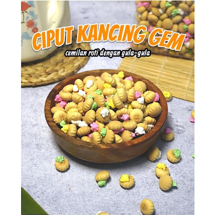Snack Ciput Kancing Gem Rose adalah camilan kering berbentuk bulat dengan warna-warna pastel cantik seperti rose pink, putih, dan krem. Memiliki tekstur renyah dan ringan dengan rasa manis gurih yang khas, membuatnya disukai anak-anak hingga dewasa. Selain rasanya yang enak, tampilannya yang cantik membuat snack ini cocok untuk suguhan tamu dan hampers snack estetik.