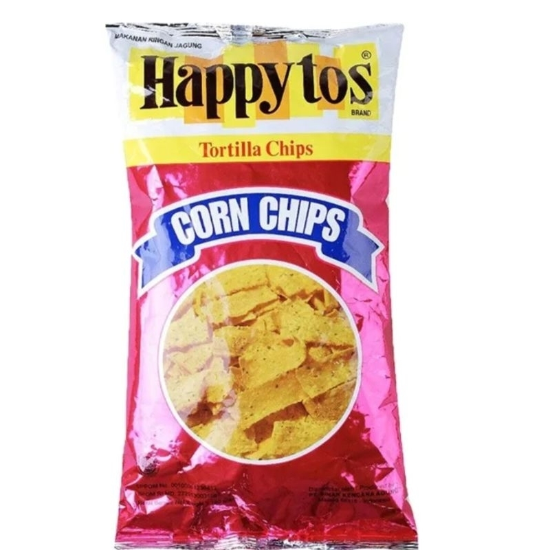Happy Tos adalah keripik jagung yang renyah dan lezat, dibuat dari biji jagung pilihan yang diolah dengan teliti dan digoreng dengan minyak kelapa sawit berkualitas. Happy Tos tidak mengandung bahan pengawet dan garam. Keripik ini memiliki tekstur tipis dan renyah, dan rasa gurih jagung bakar.