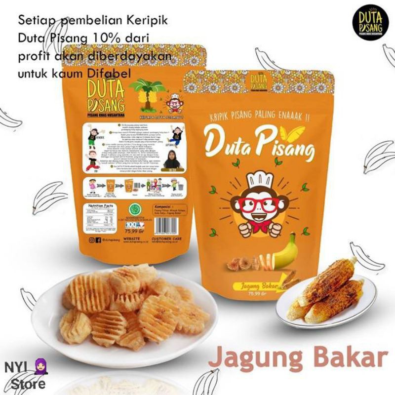 Duta Pisang. Snack Duta Pisang dengan rasa yang nikmat dan BAHAYA karena bikin kamu ketagihan. Sensasi keripik Duta Pisang yang renyah, garing dan nyummy banget ini memang no 1 rasanya - Rasa Jagung Bakar - Pisang Khas Nusantara - Ijin PIRT & Label Halal MUI