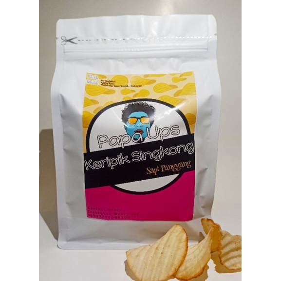 Dikemas Dengan Plastik Foil Ziplock yang tidak mudah bocor serta seal yg kuat sehingga Snack Keripik Singkong Papa.ups tetap renyah dan mudah di bawa kemanapun..