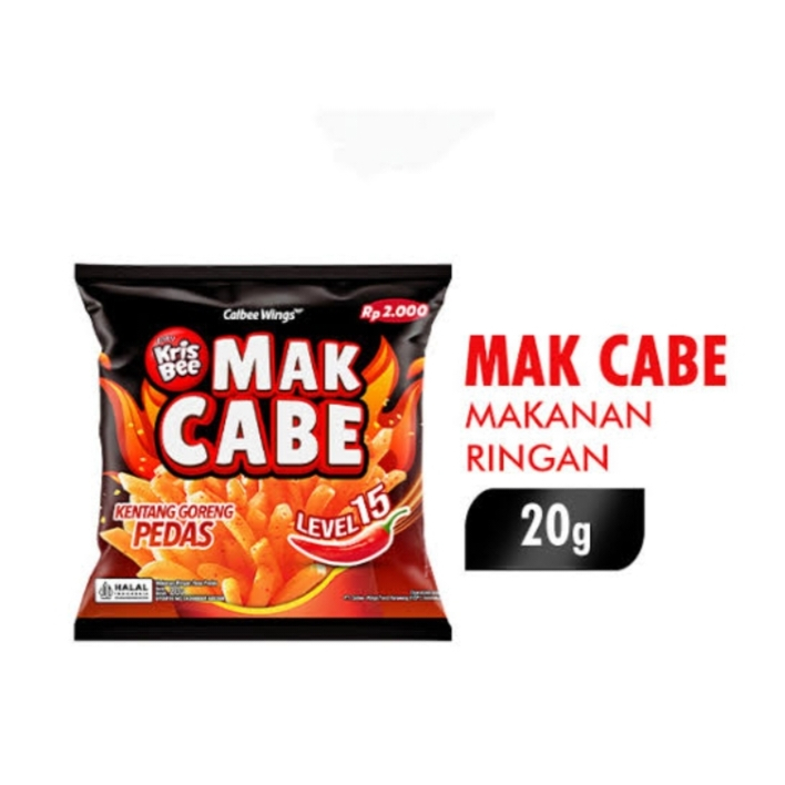 Mak cabe adalah snack stick kentang goreng asli Pedas nya enak Mak