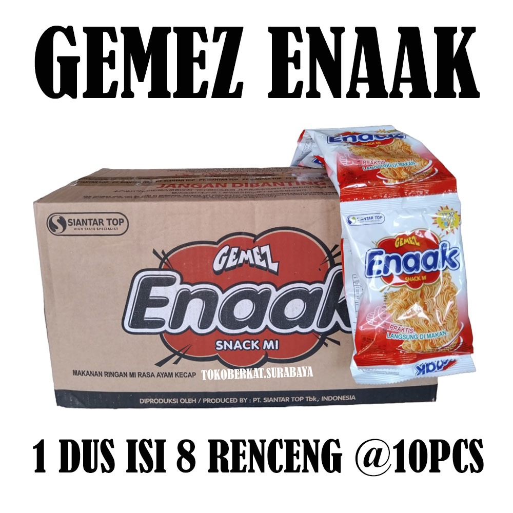 SIANTAR TOP Mie Gemez Enaak Ayam Kecap merupakan salah satu brand milik PT. Siantar Top, Sidoarjo. Salah satu varian snack mie kering yang kriuk dan sudah berbumbu, tanpa harus dicampur dahulu dengan bumbu terpisah, tanpa harus menabur, mengocok, dan tidak perlu repot.