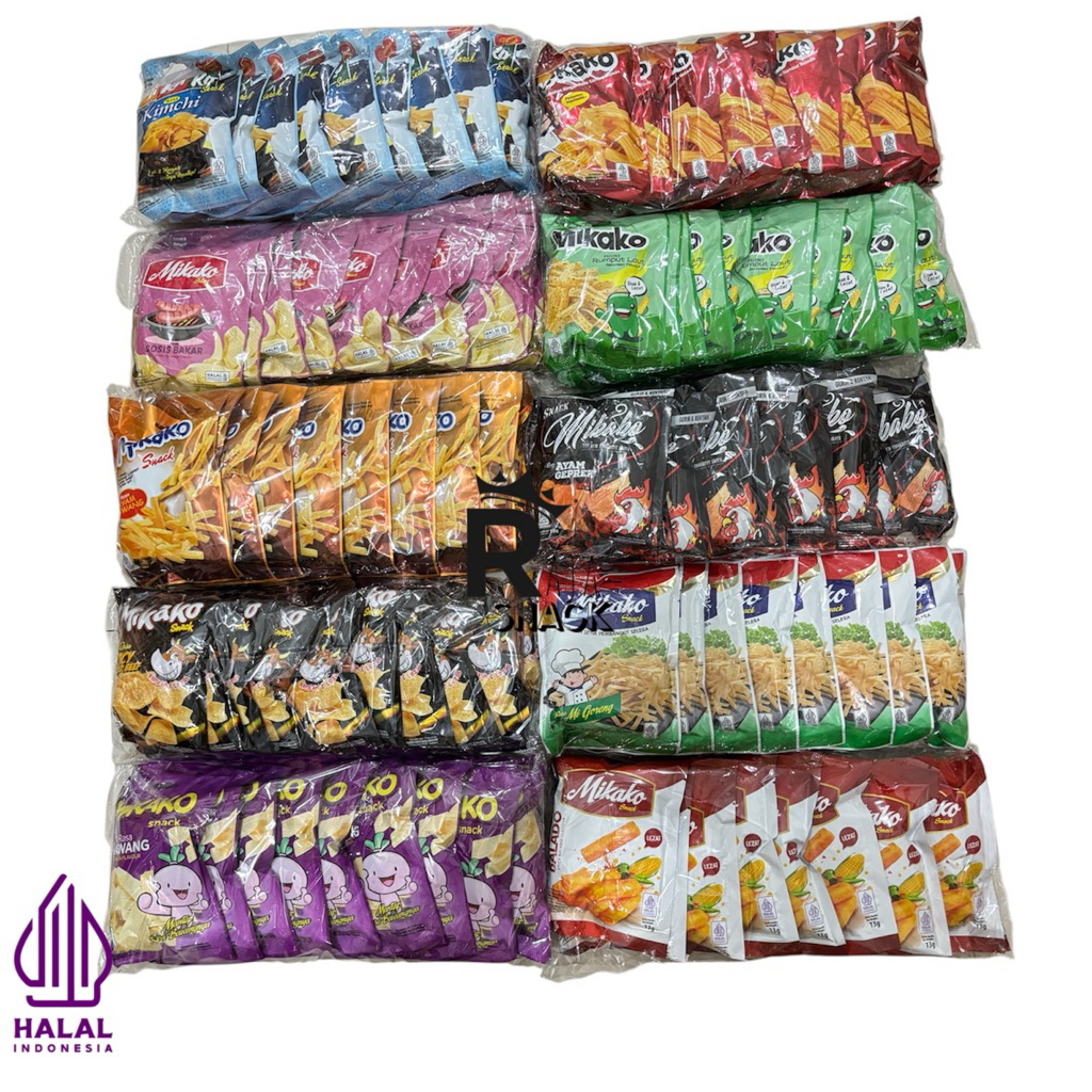 SNACK MIKAKO RASA AYAM BAWANG / SAMBAL BALADO / MI GORENG / AYAM GEPREK / SOSIS BAKAR / KIMCHI / SPICY SMOKED BEEF / RUMPUT LAUT ISI 10PCS