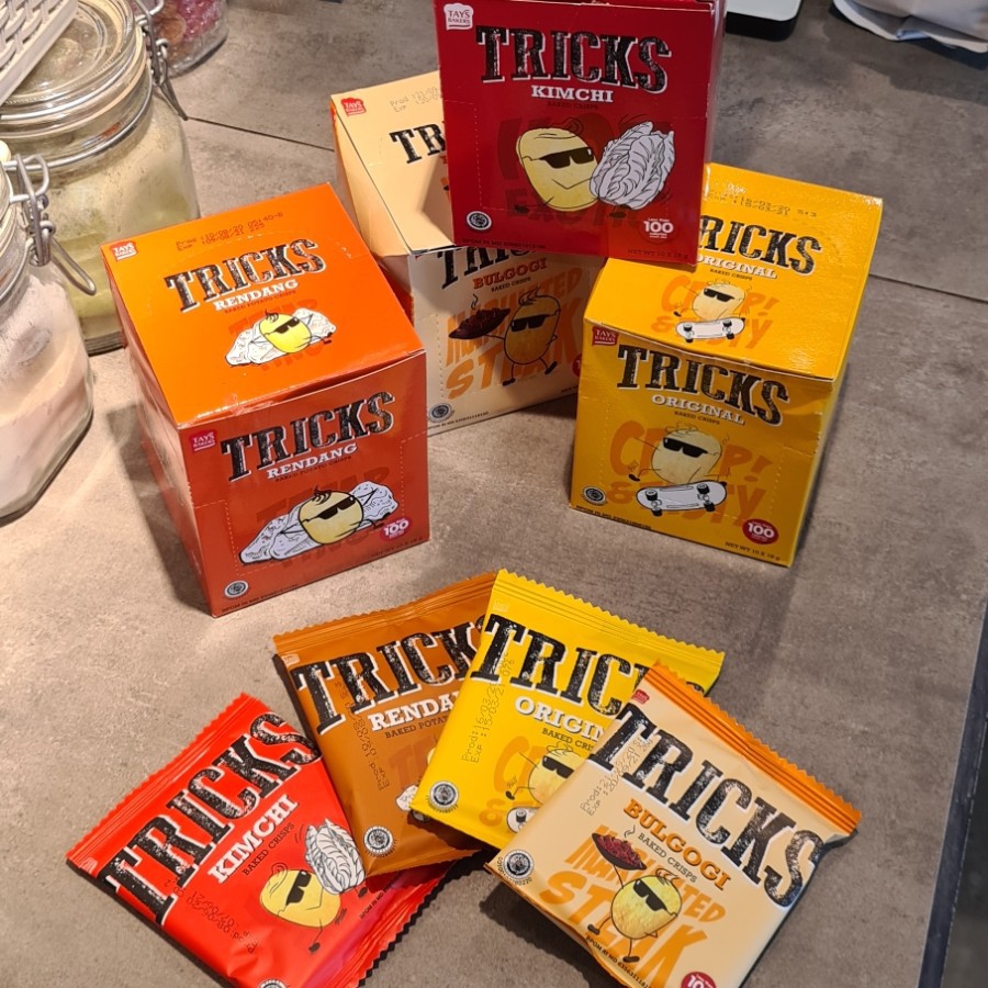 Snack kentang dengan varian rasa Asia yang khas membuat Tricks menjadi favorit semua kalangan. Dengan rasa Original, Asian BBQ, Kimchi, dan Rendang pastinya bakal bikin kamu ketagihan.