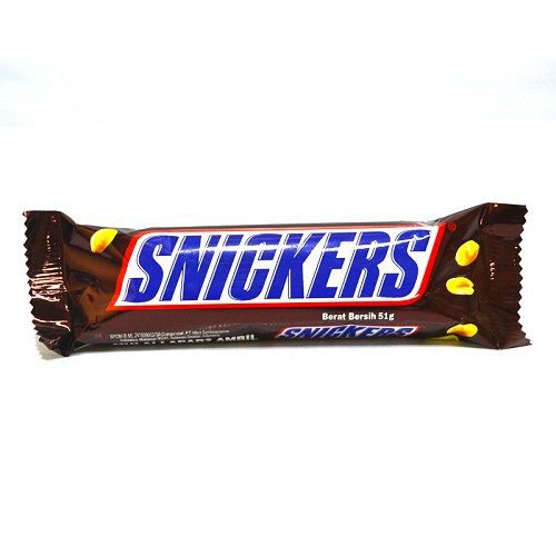 SNICKERS 51gr, merupakan coklat bar dengan perpaduan nougat putih dari gula, kacang panggang, dan buah kering, kacang yang disangrai, karamel, dan susu coklat yang dahsyat. Setiap bahan dengan kebaikannya masing-masing tersebut berpadu dalam sebuah kombinasi yang lezat, menjadikan Snickers sebagai coklat bar yang dapat menyelamatkan kita dari rasa lapar dan "mengembalikan" diri kita sepenuhnya.