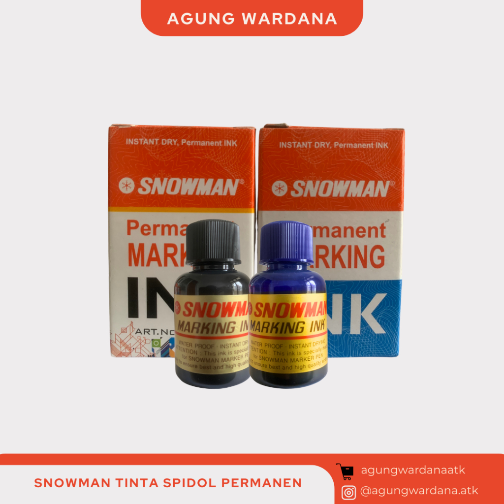 Tinta spidol permanent marker snowman ini cocok digunakan untuk mengisi ulang segala jenis dan merek spidol (disarankan utk Snowman tipe AG-12, G-12, G-12T, Jumbo 450, Jumbo 500).