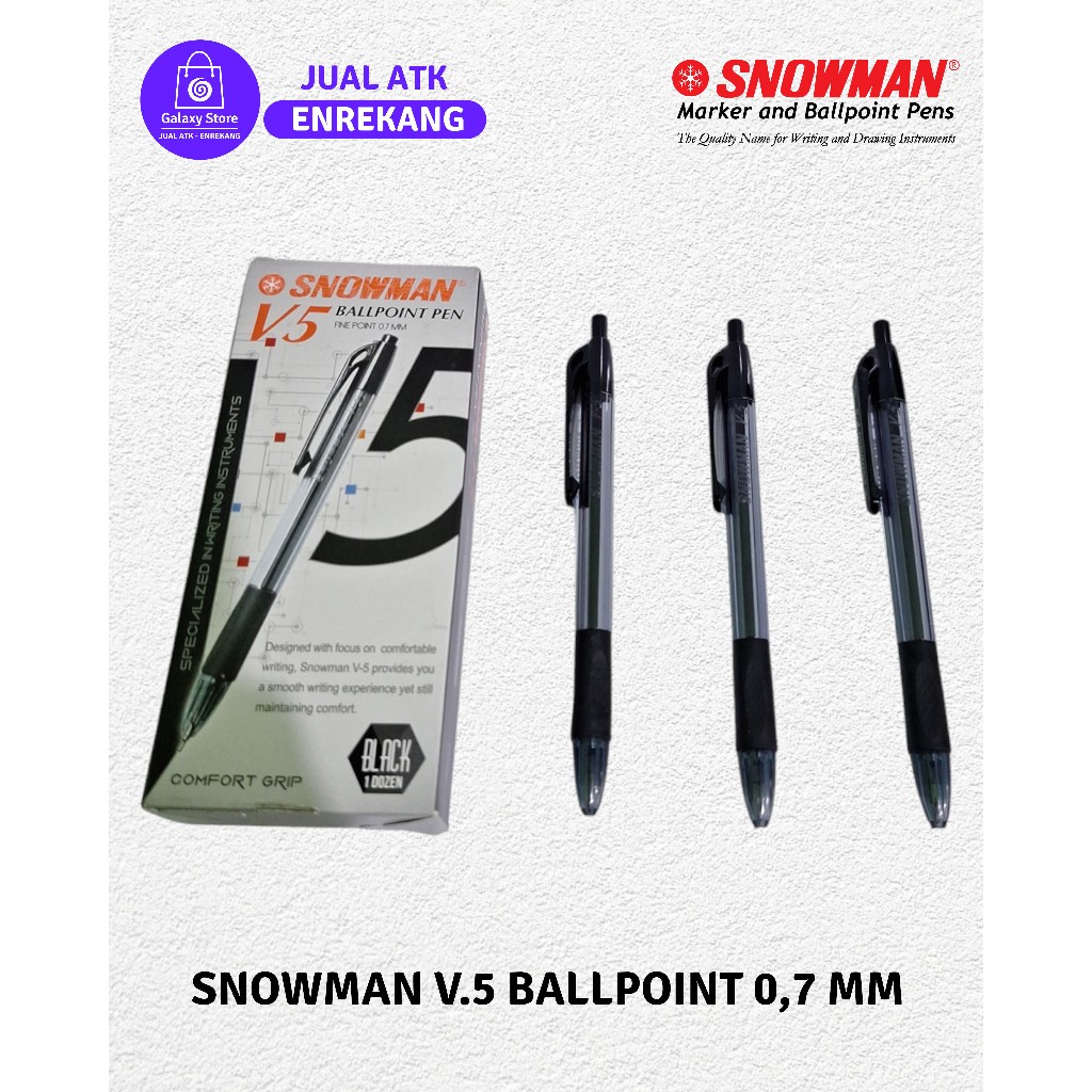 Dapatkan pengalaman menulis yang lebih nyaman dengan SNOWMAN V.5 BALLPOINT. Dirancang dengan ujung bola berkualitas tinggi, pena ini memberikan aliran tinta yang halus dan tidak mudah luntur. Dengan desain ergonomis dan pegangan yang nyaman, SNOWMAN V.5 ideal digunakan untuk kebutuhan menulis sehari-hari, baik di sekolah, kantor, atau di rumah.
