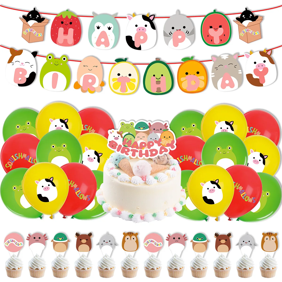 NEN Disney Oval Cute Fruit Animal Cartoon Pattern Theme Birthday Party Decoration Balloon Banner Baby Shower Girl Kid Boy Gift