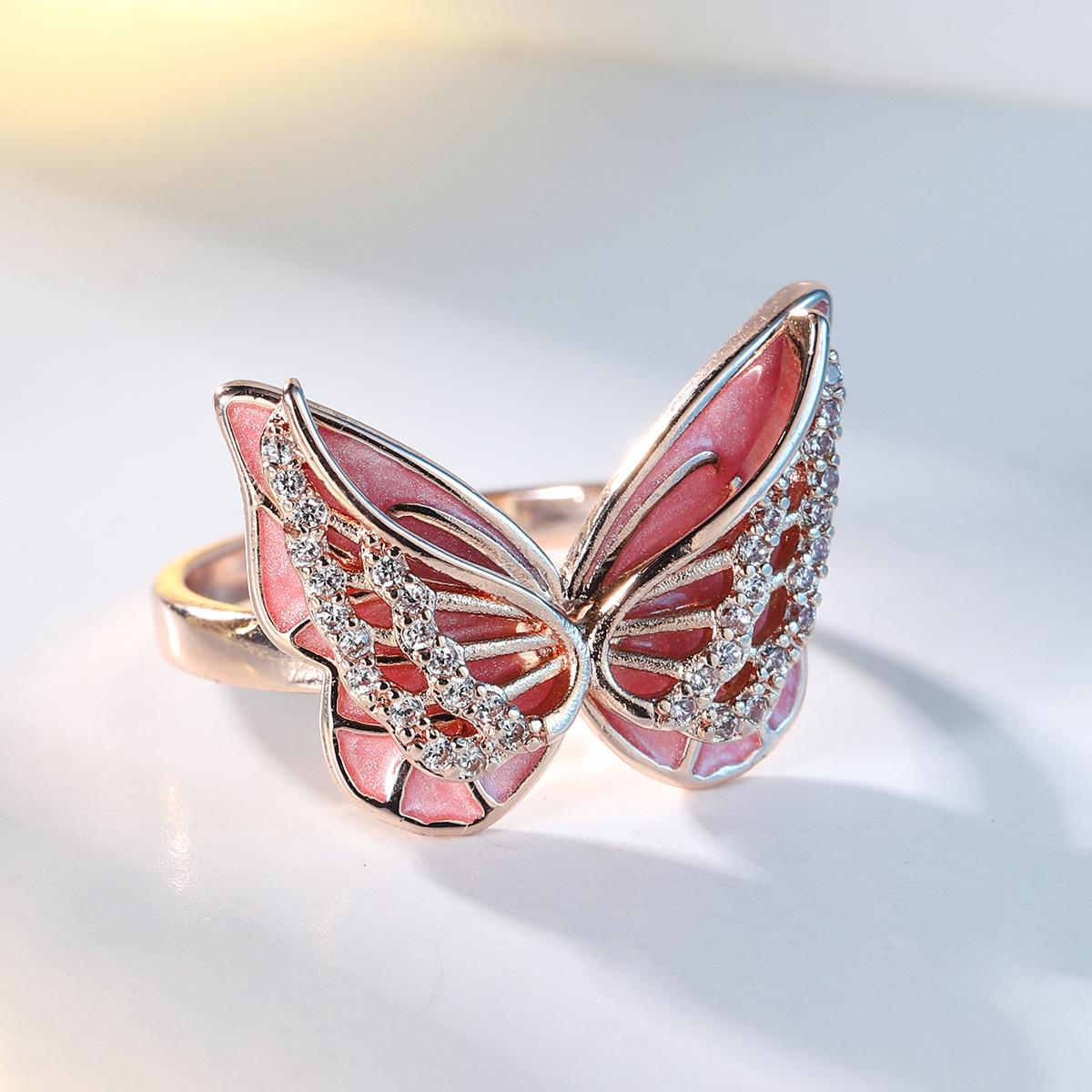 SODROV розовое золото ювелирные изделия с насекомыми эмалированная роспись кольцо большие кольца-бабочки для женщин 6