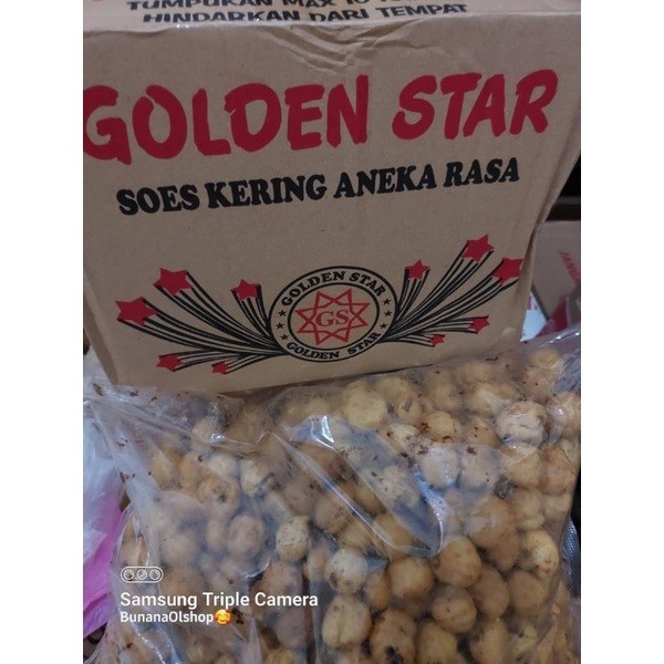 Soes kering coklat Merk GOLDEN STAR merupakan soes isi coklat berbahan premium dengan isian full coklat yang lumer dan tidak bosan. Pas di nikamti waktu santai bersama kelurga. Bisa juga buat suguhan dan oleh oleh (bingkisan)