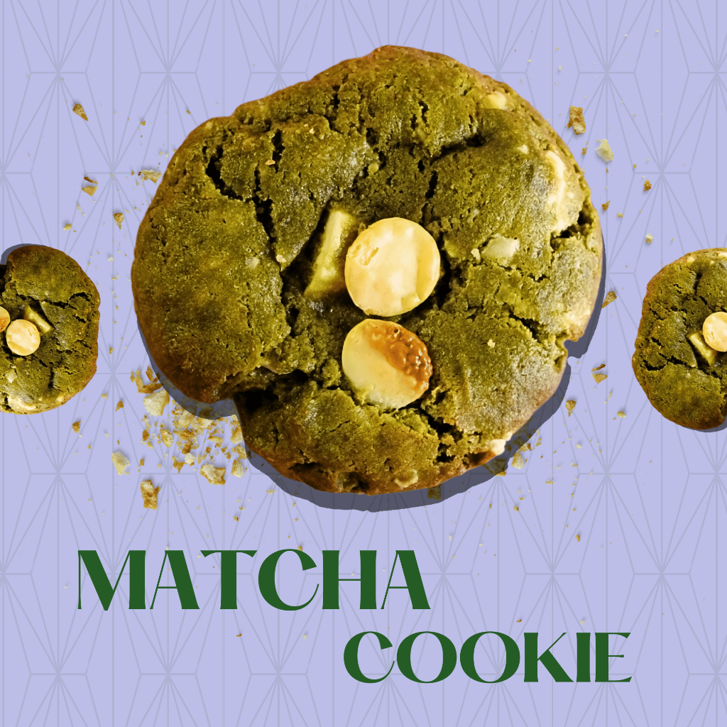 Dibuat dari matcha asli berkualitas tinggi, cookie ini menghadirkan cita rasa earthy yang khas dengan manis yang lembut dari Belgian white chocolate memberikan aroma dan rasa khas matcha cookie ini dibuat dengan teknik soft-baked untuk menghasilkan tekstur chewy yang lembut namun tetap sedikit crunchy di pinggirnya.
