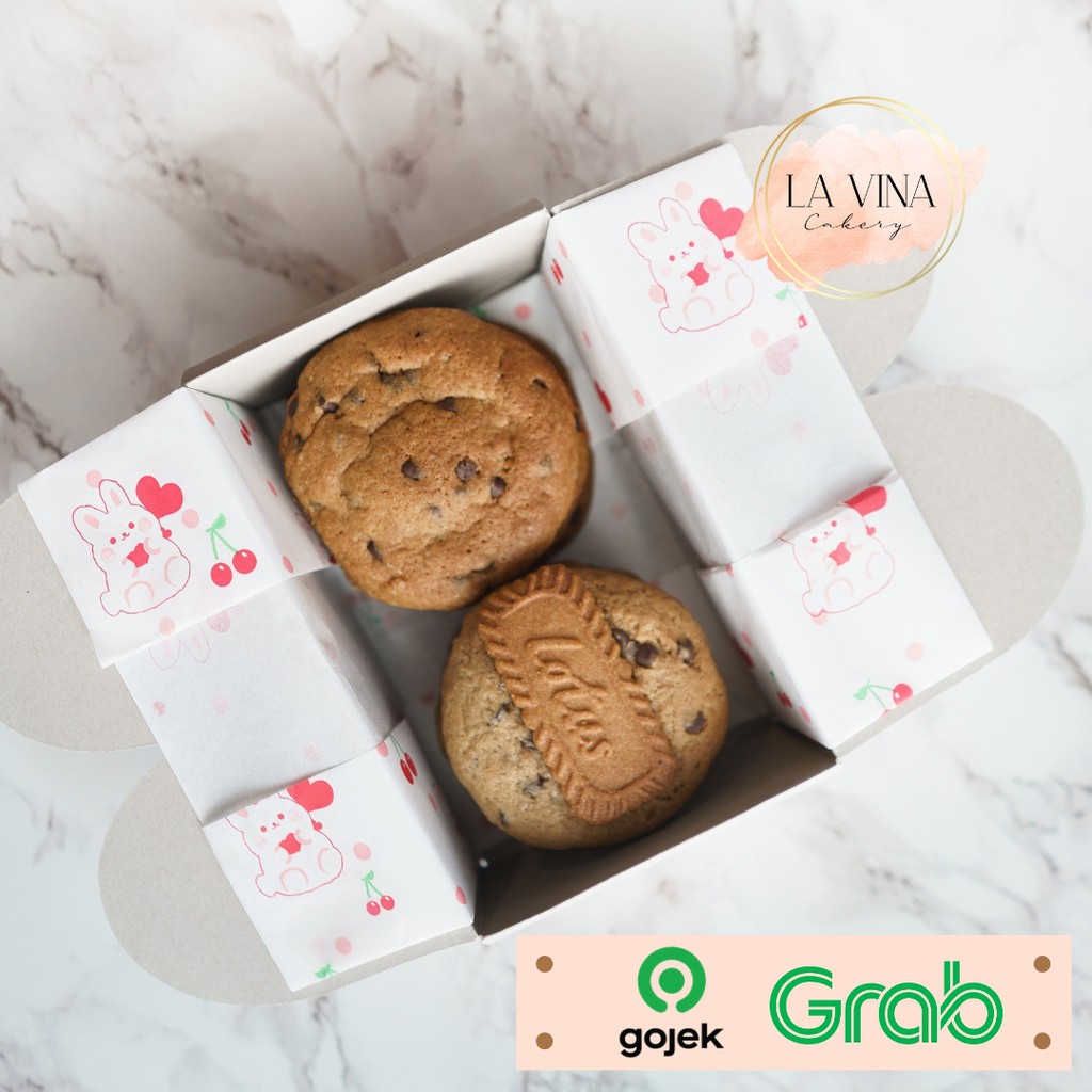 Soft Cookies dengan rasa original dengan tekstur chewy dan lembut ditengah , berpadu dengan selai lotus / nutella.