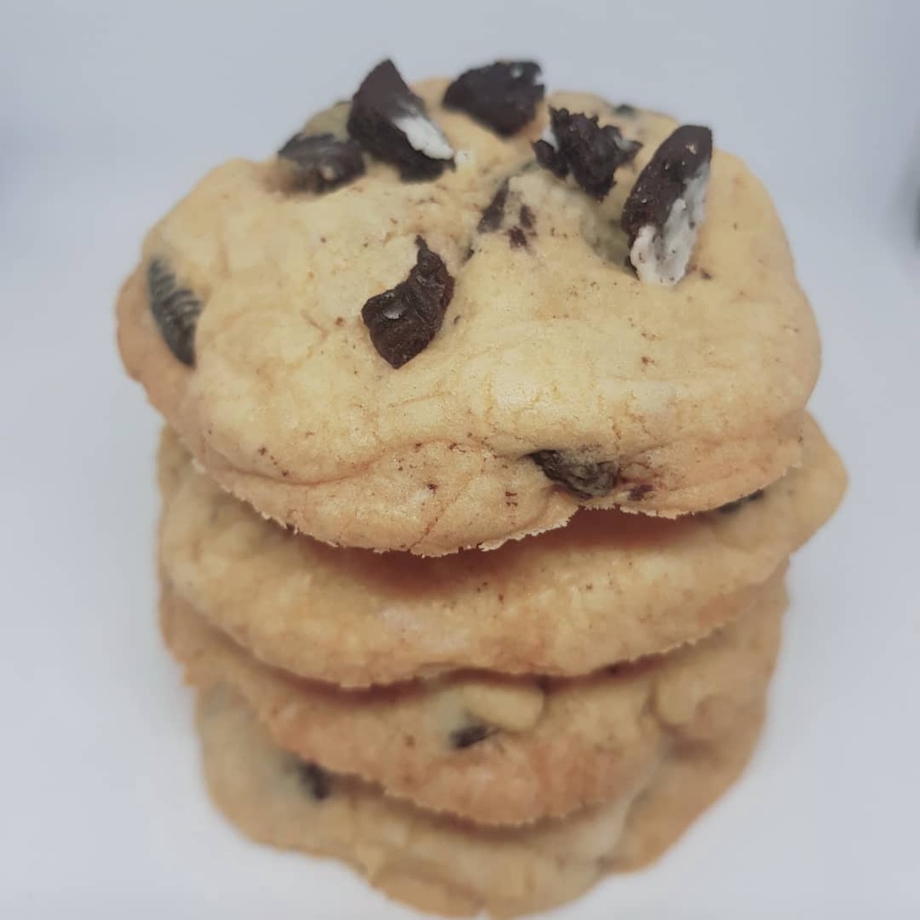 mentega, gula castor, telur, garam, vanilla extract, baking soda, tepung serba guna, oreo