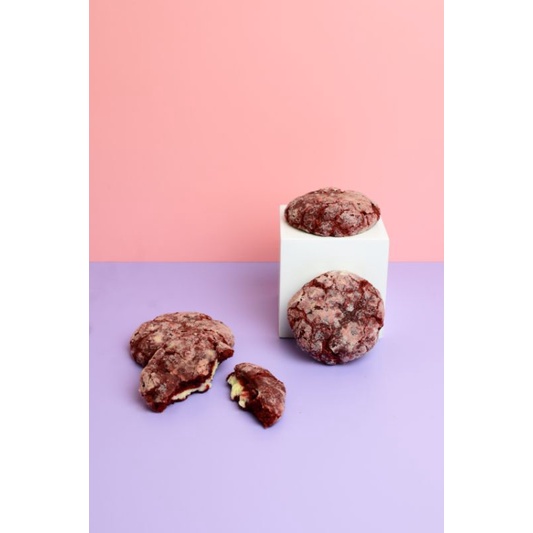 soft cookie redvelvet ini adalah soft cookie rasa redvelvet dengan filling creamy, manis, asem
