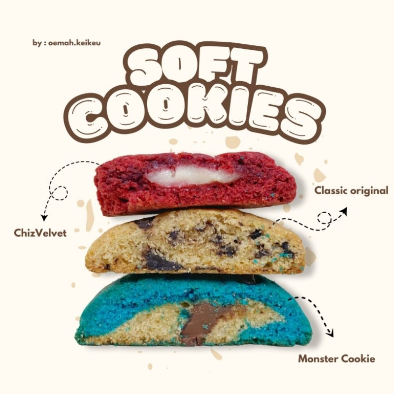 soft cookies kue kering dengan tekstur yang lembut dan kenyal didalam dengan bagian luar nya yang renyah