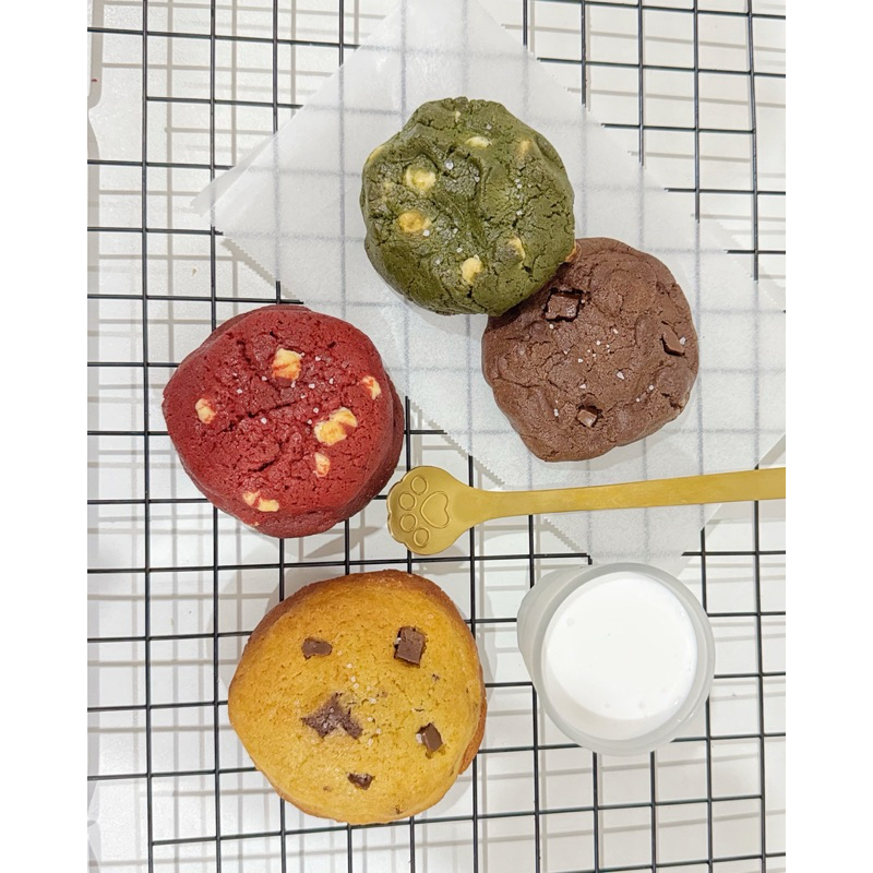 Soft Cookies dengan tekstur chewy, soft dan moist dengan dark chocolatte dan taburan seasalt. Jenis cookies yang renyah dibagian luar tetapi soft dibagian dalam.