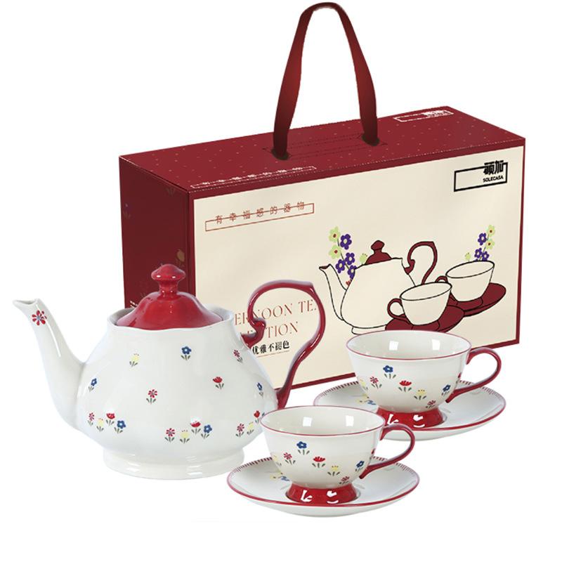 SOLECASA Керамические чайные наборы Ретро цветочный узор Чайник Чашка Европейская послеобеденная чашка Фарфоровая кофейная чашка и блюдце Праздничный подарок красный