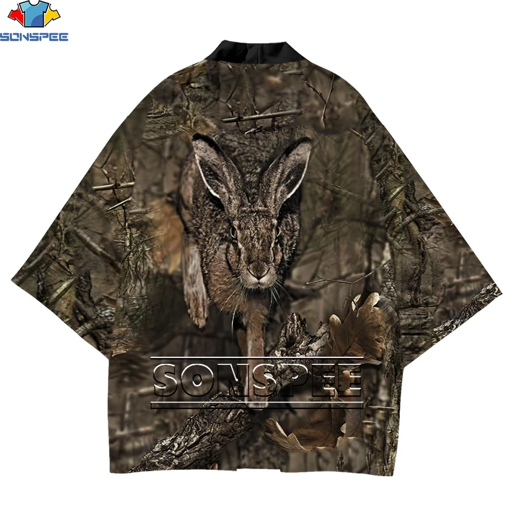 SONSPEE новейшее кимоно в японском стиле охотничий заяц короткий халат уличная одежда 3D мужской женский кардиган одежда унисекс домашняя одежда