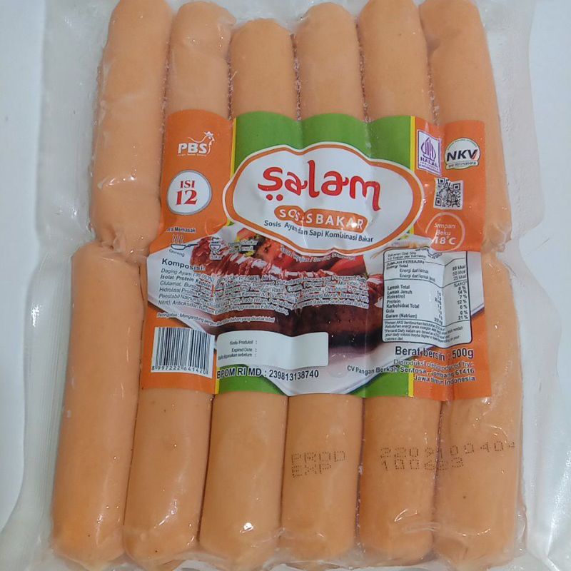 SOSIS BAKAR SALAM 500 GR ISI 12 PCS, SOSIS AYAM DAN SAPI KOMBINASI BAKAR
