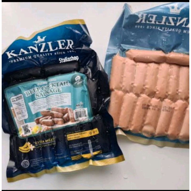 Sosis Kanzler Beef Cocktail ini terbuat dari daging premium yang dicincang halus dengan ukuran lebih kecil. Dibuat dengan metode pengasapan, pengeringan dan pemasakan dengan uap. Tanpa menggunakan MSG dan bahan pewarna.