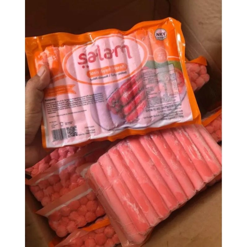 berbagai macam produk salam sudah beredar dan booming.termasuk sosis salam merah ini.selain rasanya enak isinya juga banyak dan yang paling penting harga nya terjangkau dan exp sampai tahun depan.so..aman banget kan untuk kadaluarsa nya