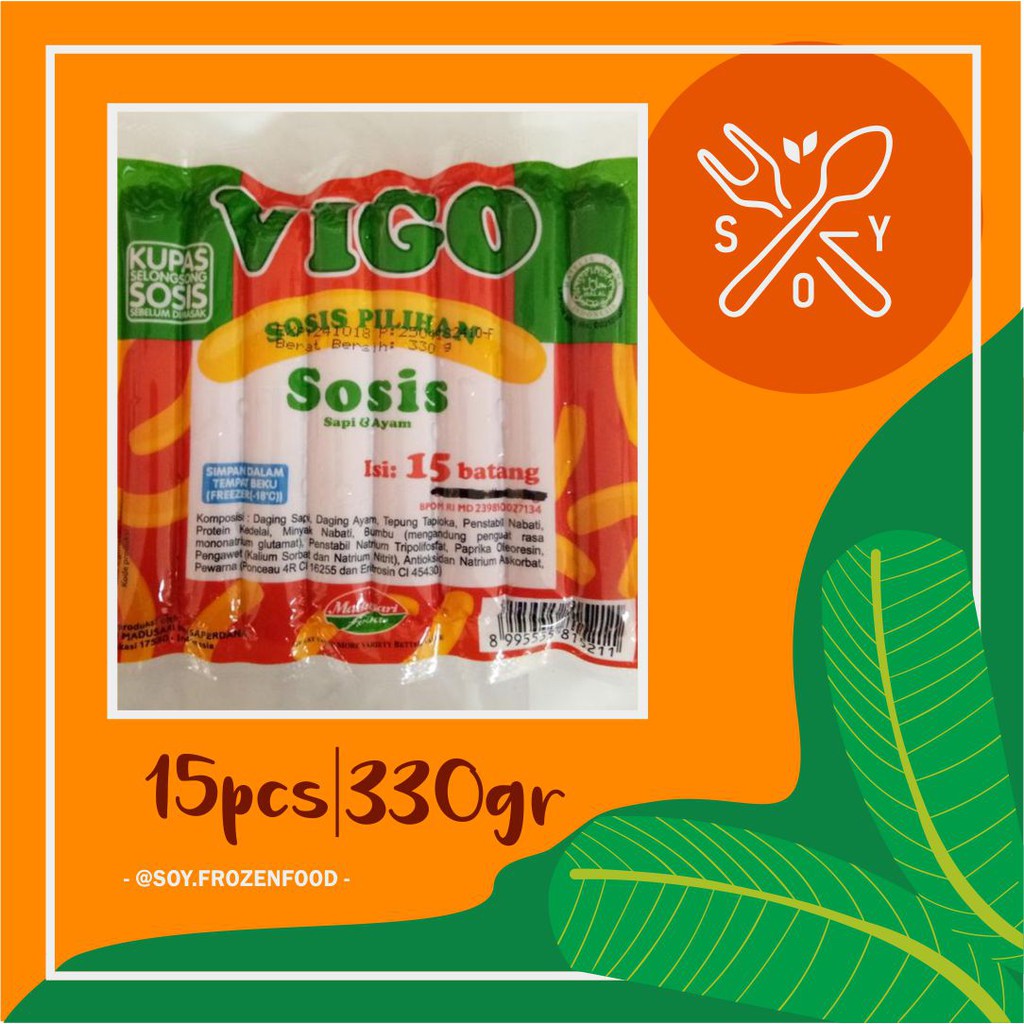 Berbeda dari kebanyakan sosis pada umumnya yang hanya terbuat dari satu jenis daging, sapi atau ayam saja, tidak dengan sosis dari Vigo ini. Terbuat dari campuran daging sapi dan ayam olahan, sehingga warna merah pada sosis ini tidak begitu mencolok. Diracik dengan bumbu-bumbu berkualitas dan dijual dengan harga yang cukup terjangkau, menjadikan sosis cocok untuk bekal anak-anak ke sekolah.