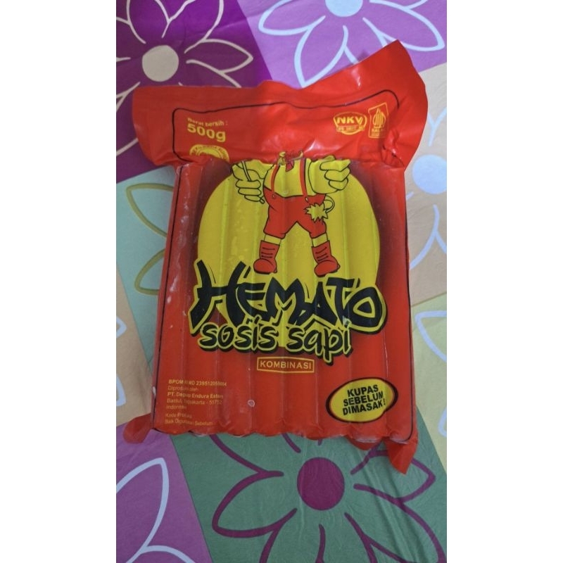 Sosis sapi hemato ukuran 500 gr, isi 15 pcs/bungkus.