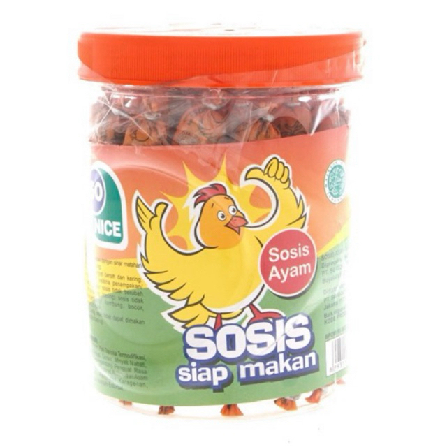 sosis siap makan so nice, sedia rasa ayam & sapi bisa satuan atau toplesan. 1 toples isi 24pcs, 480gr.