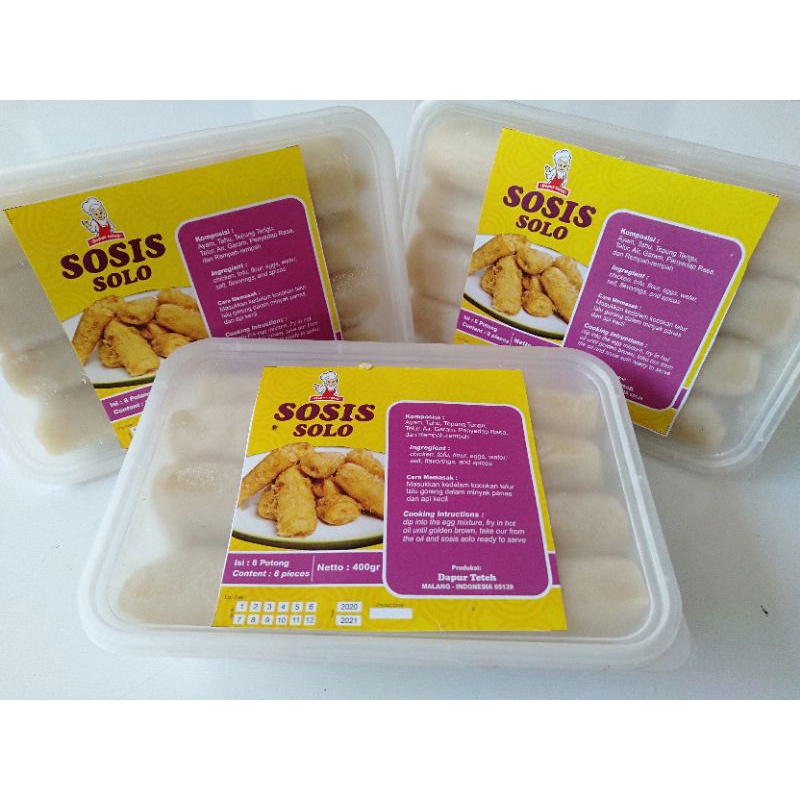 Sosis Solo produksi rumahan dari 'dapur teteh' adalah camilan sehat yang diolah dari bahan-bahan pilihan kualitas baik dengan isian olahan daging ayam lezat.