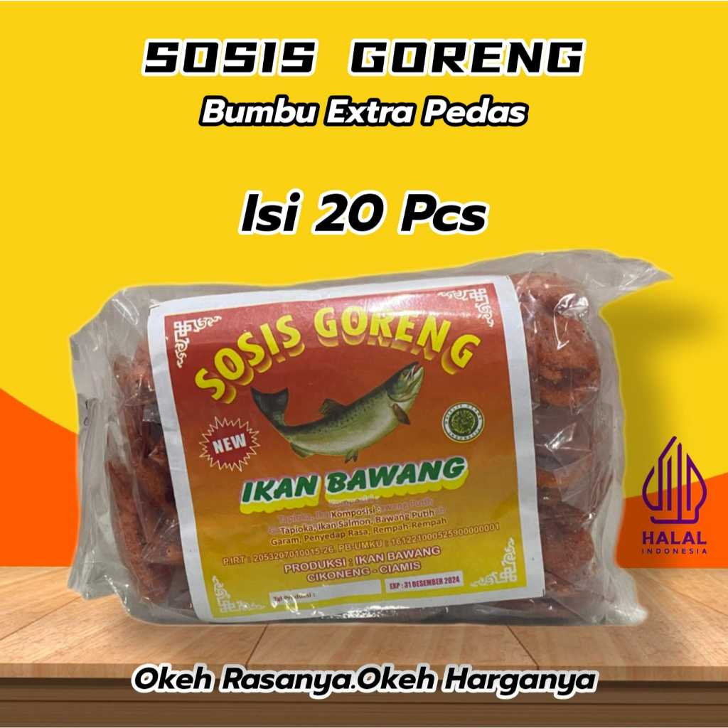 Sosis Goreng Adalah Makanan ringan dengan bahan dasar utama Tepung Tapioka yang dicampur dengan ikan laut, Diproduksi dipabrik sendiri, dibentuk seperti sosis yang dipotong potong, Diberi penyedap rasa dan bumbu rempah sambal balado pedas yang memberikan Rasa Pedas Gurih Manis.
