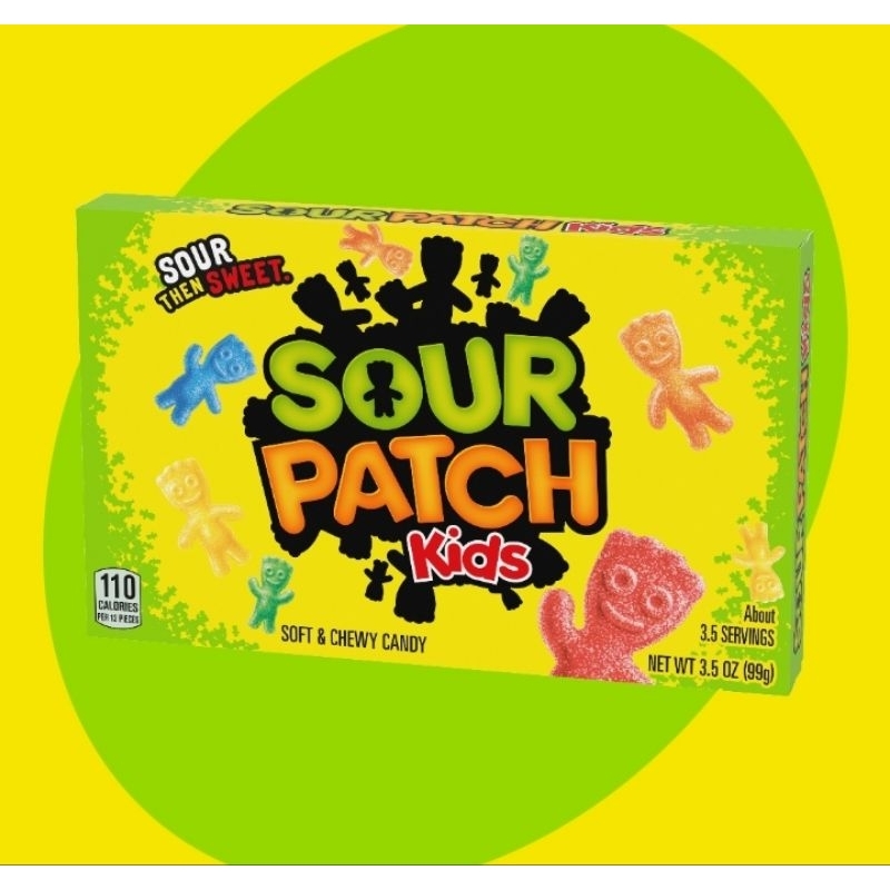 SOUR PATCH KIDS Original Soft & Chewy Candy packs all the classic flavor into a mischief-filled soft candy. Each fruit flavored candy contains red candy, along with blue, orange, yellow and green candy in signature assorted fruit flavors that create a SOUR THEN SWEET treat to satisfy your taste buds. Add a little fun to your candy experience with the unique kid shapes that give these candies their name. A fat free food, this sour treat is great for multiple occasions. Enjoy this candy whenever you want a SOUR THEN SWEET treat by keeping a package on-hand for quick snacks or as party favors for Halloween, Valentine's Day or birthdays. SOUR PATCH KIDS soft candy also makes a great movie theater candy to snack on during your favorite flick. A fun alternative to bagged candy, this box of candy is the perfect size for stashing in purses, backpacks and lunchboxes. Stay stocked with sour candies so you're always ready for a snack.