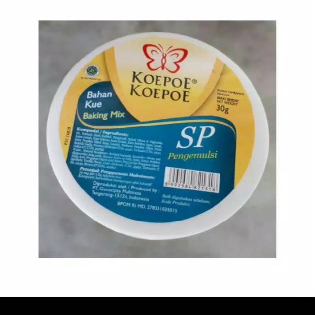 SP Koepoe Koepoe hadir dalam kemasan 30gram, digunakan sebagai pengembang kue dan roti. Untuk takaran pemakaian 70gr per 1kg adonan.