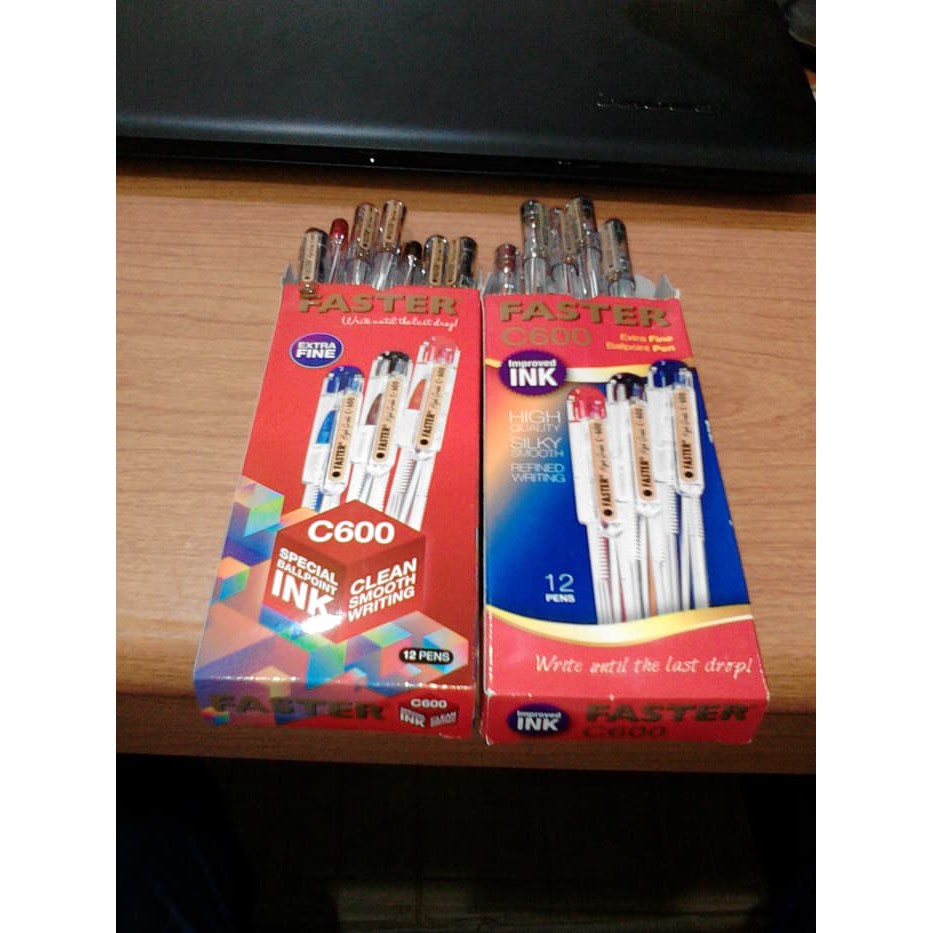 *Pulpen faster C600 merupakan pulpen yang sangat sering digunakan olehpara user karena kualitasna yang tinggi, anti kering serta design yang unik dan belang belang berwarna membuat para user lebih semangat dalam menulis.