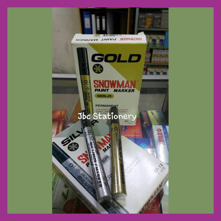 spidol permanent (tidak bisa dihapus) merk snowman warna emas , silver dan putih.