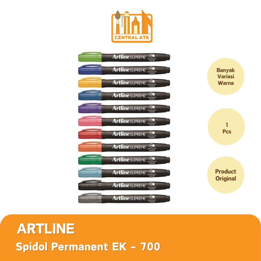 SPIDOL ARTLINE EPF-700 PERMANEN adalah spidol permanen merk Artline yang dapat digunakan sebagai alat tulis atau alat mewarnai dengan variant warna yang banyak dan harga ekonomis untuk produk berkualitas.