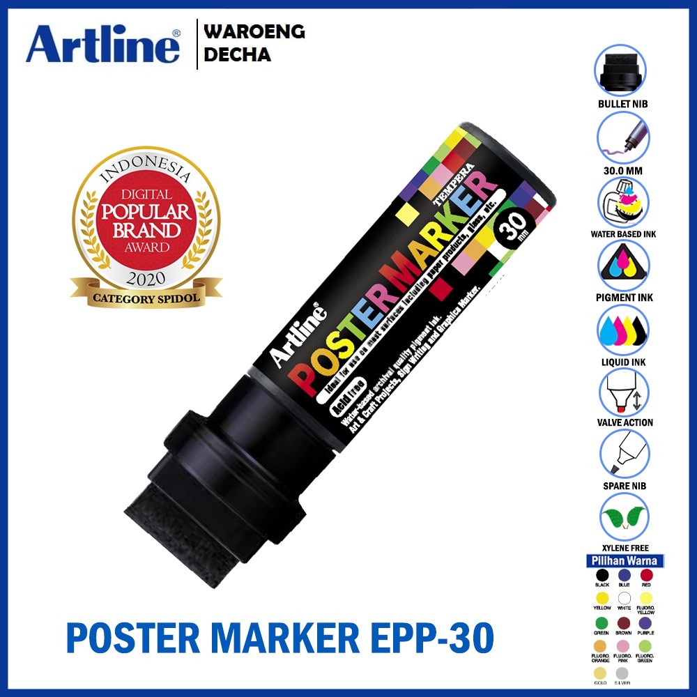 - Spidol yang dapat dipergunakan untuk media kaca, plastik, kartu, kayu, batu dll