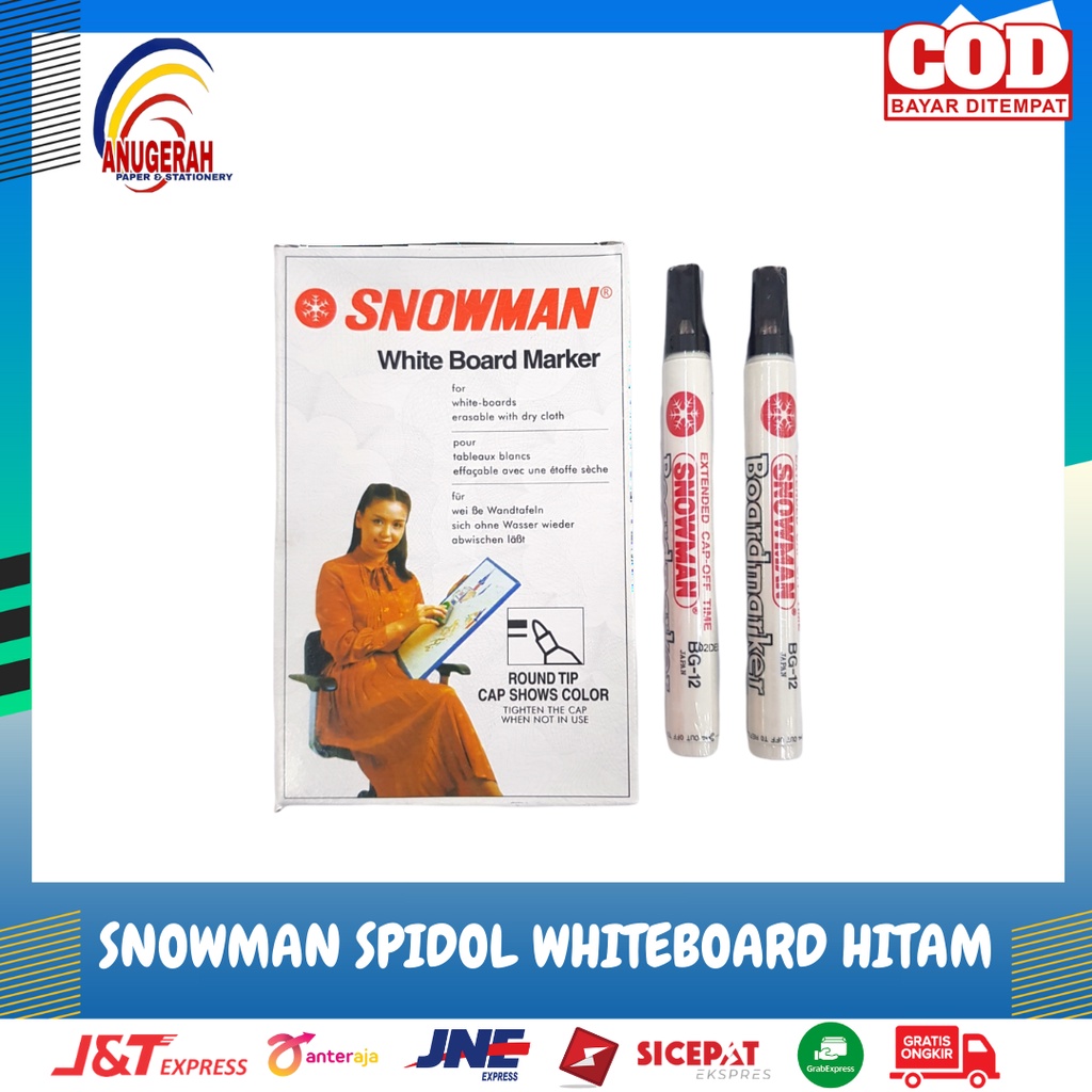 SPIDOL SNOWMAN WHITEBOARD HITAM / SPIDOL PAPAN TULIS HITAM (PCS)