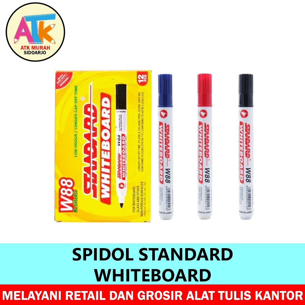 Spidol Whiteboard Merk Standard adalah pilihan sempurna untuk menulis di papan tulis kering Anda. Dengan ukuran yang besar, spidol ini sangat nyaman digunakan saat presentasi atau mengajar di kelas.