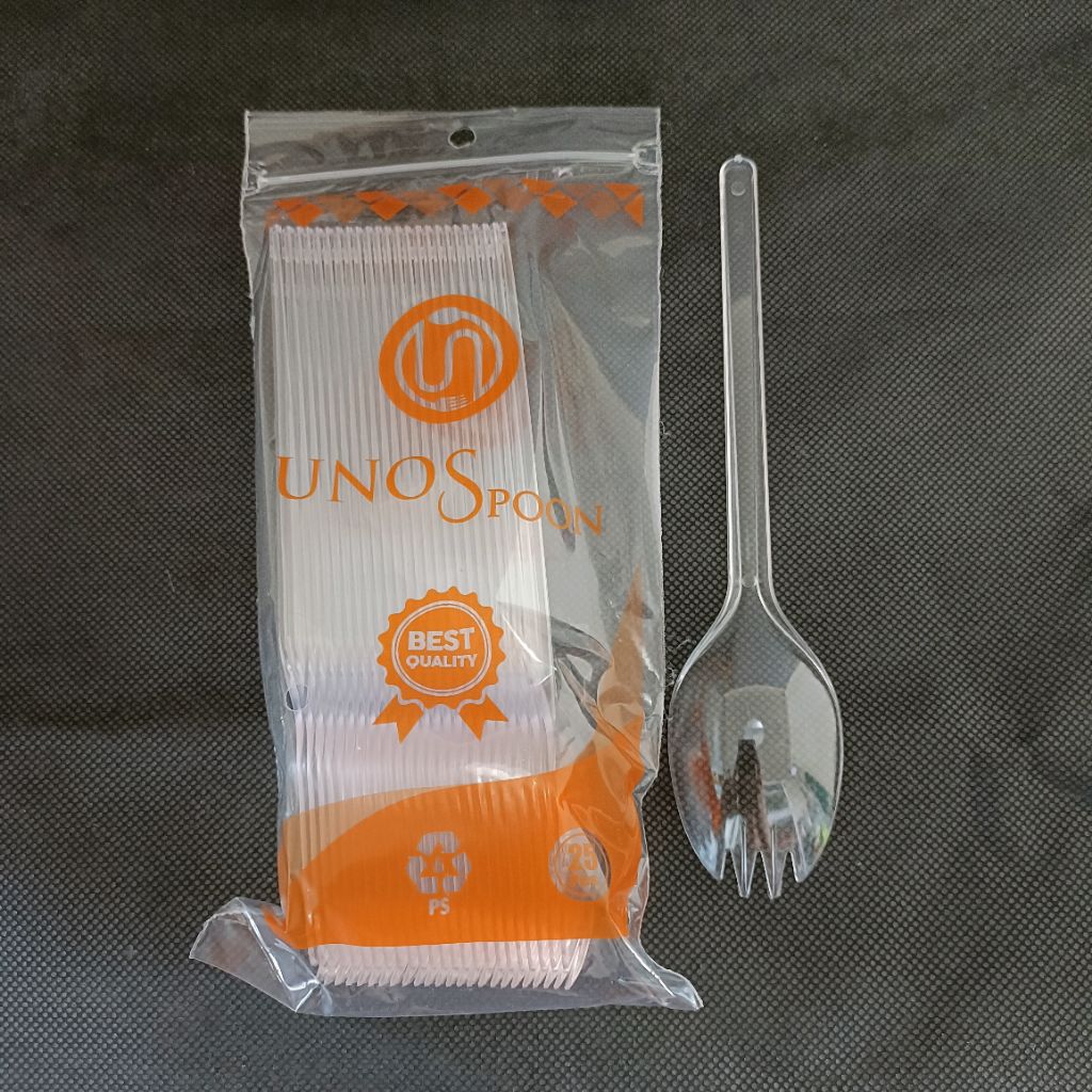 spork bening atau sendok+ garpu bening ( seperti digambar )