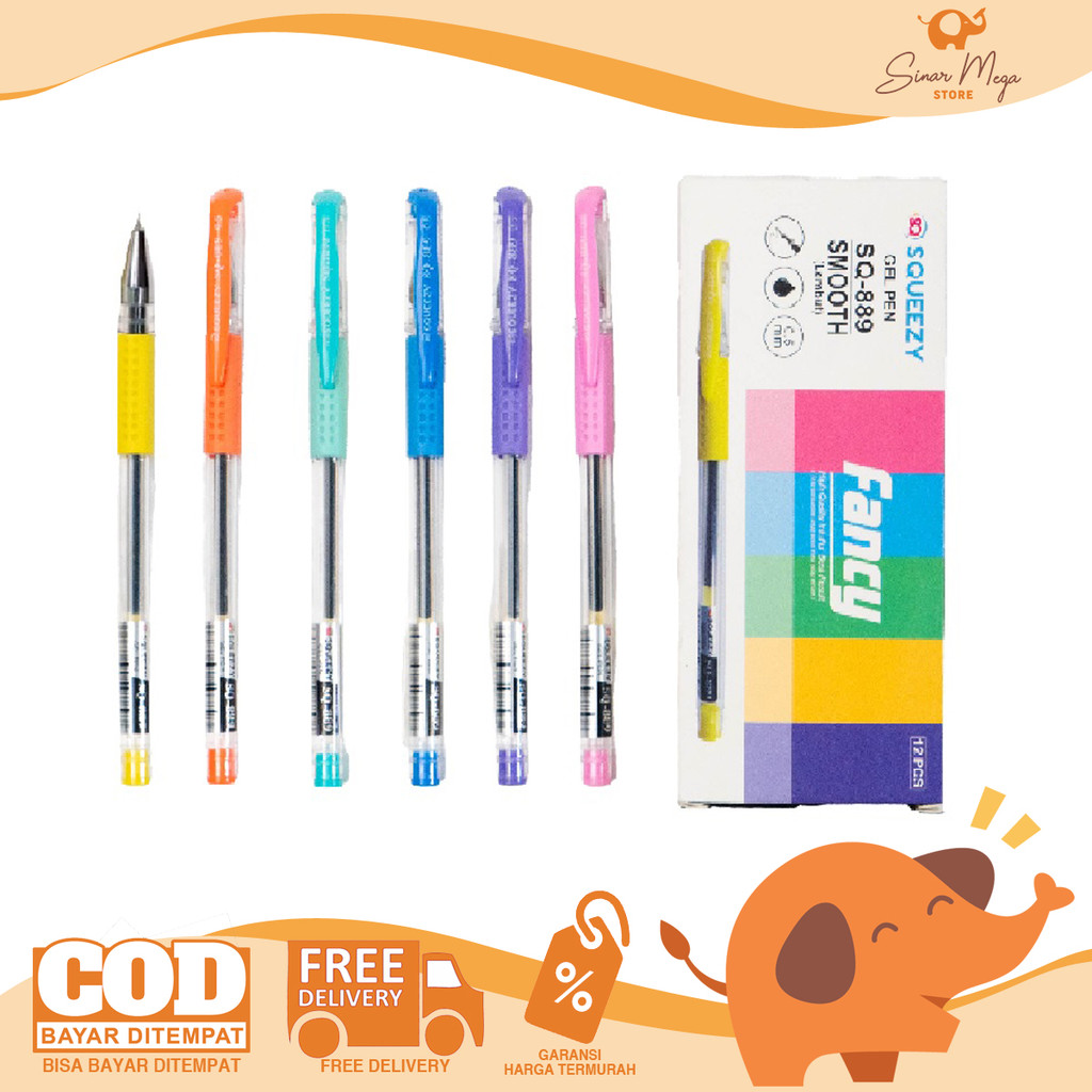 SQUEEZY Gel Pen Fancy Smooth 0.5mm GP-SQ889 Black / Pulpen Pena Hitam SATUAN