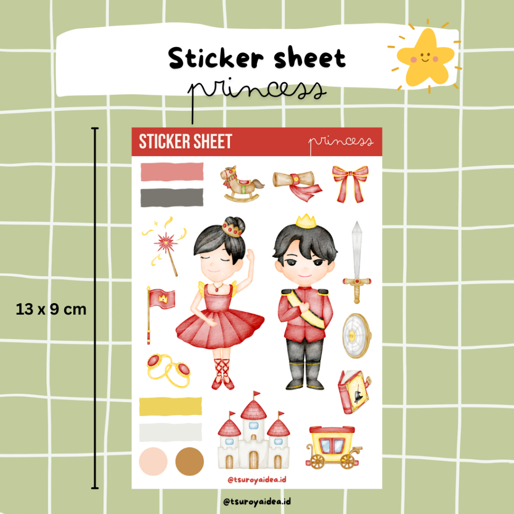 SS024 - Princess Sticker Sheet, Sticker Journal Lucu Aesthetic