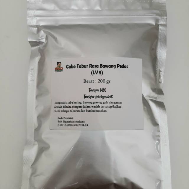 Komposisi : cabe rawit kering 100 %, bawang goreng, gula, dan garam
