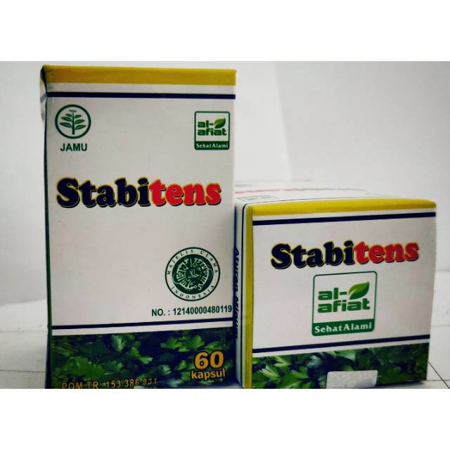 KhasiatStabitens Al Afiat,Insyaallah: Membantu menormStabitens Al Afiat 60 Kapsuladalah produk Al Afiatyang berkualitas tinggi dan bermanfaat untuk menjaga dan menrmalkan tekanan darah. ProdukStabitensAl Afiatini dibuat dari 100% ekstrak herbal dan tanaman alami, sehingga mudah diserap tubuh dan juga mudah dikeluarkan tubuh jika berlebihan tanpa menimbulkan efek samping.Produk Herbal Suplemenini telah memiliki CA (Certificate of Analysis) dan mendapatkan izin edar BPOM (Badan Pengawas Obat Makanan) serta sertifikat halal MUI untuk cangkang kapsulnya. Oleh karena itu, kualitasnya tidak diragukan lagi. Konsumsilah secara rutin dan rasakanlah khasiatnya. Jagalah selalu kesehatan Anda.