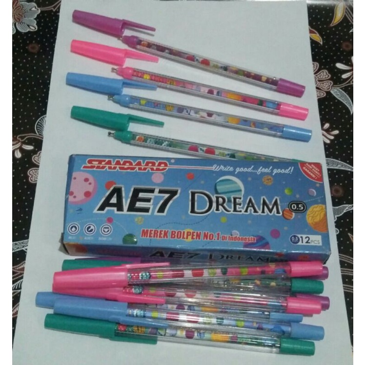 Bolpen ae7 dream dari standard ini mempunyai cover2 yang lucu dan varian warna yg soft.